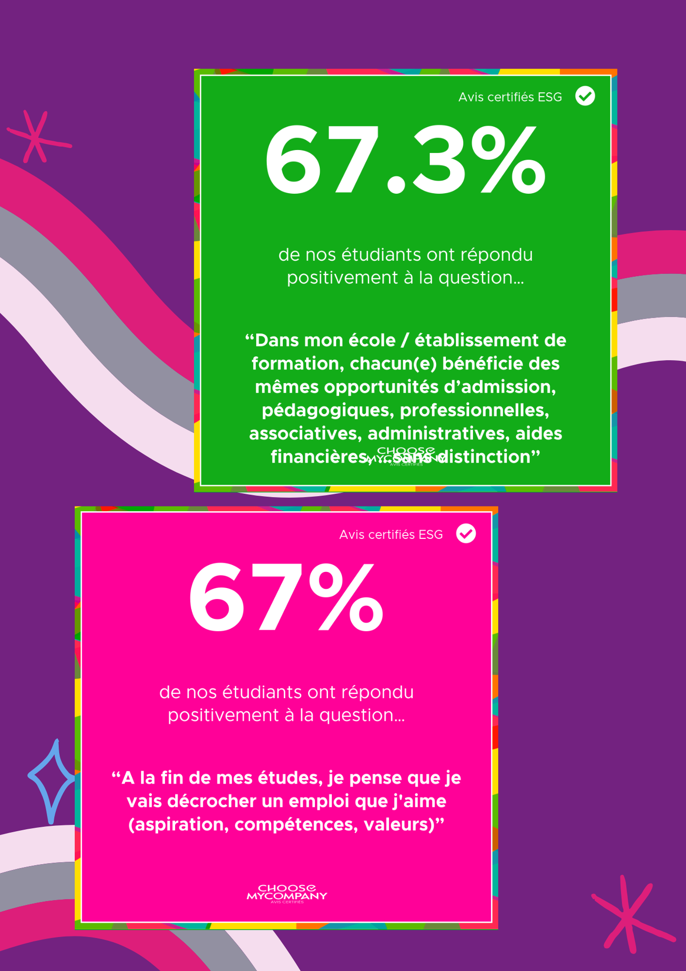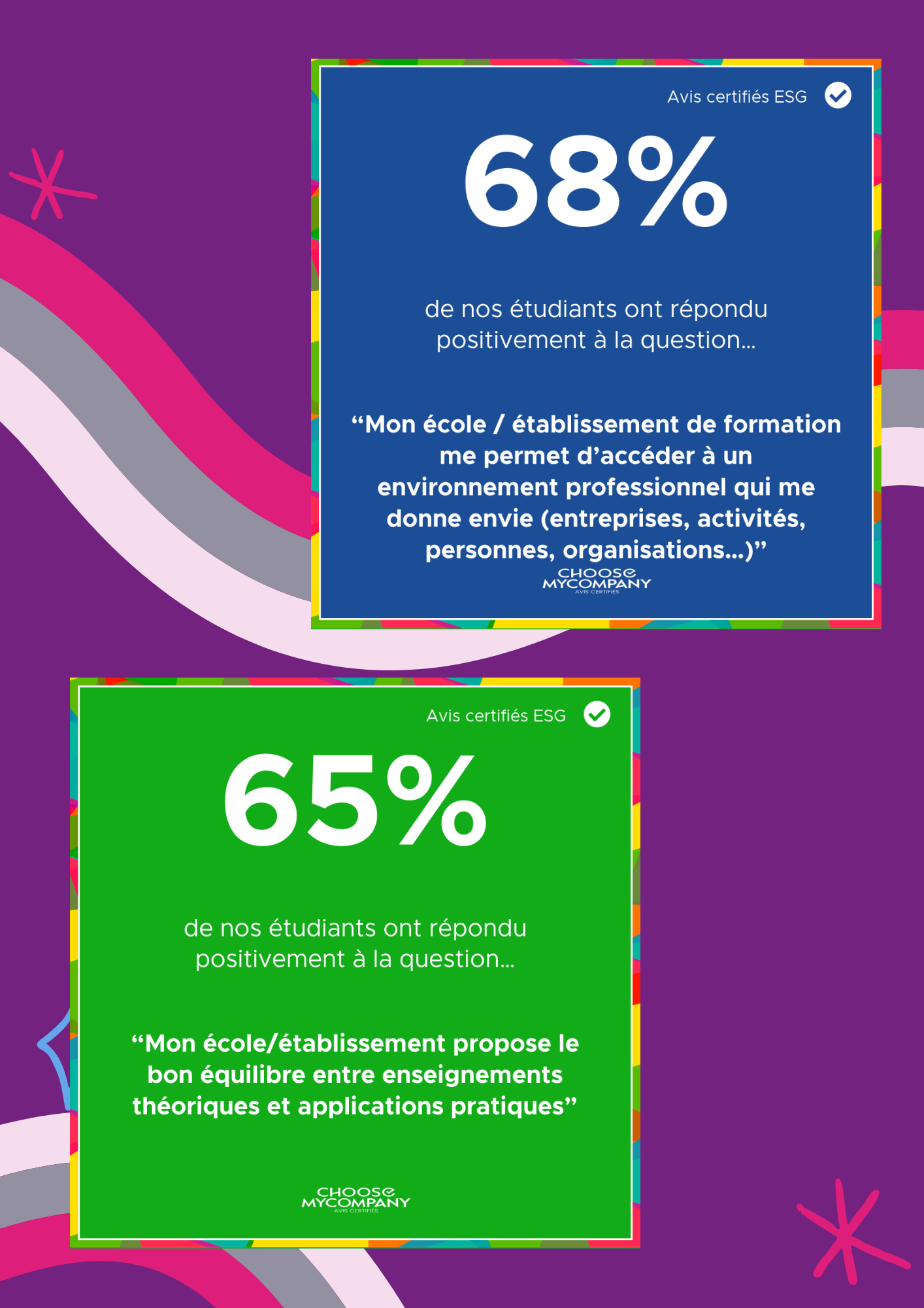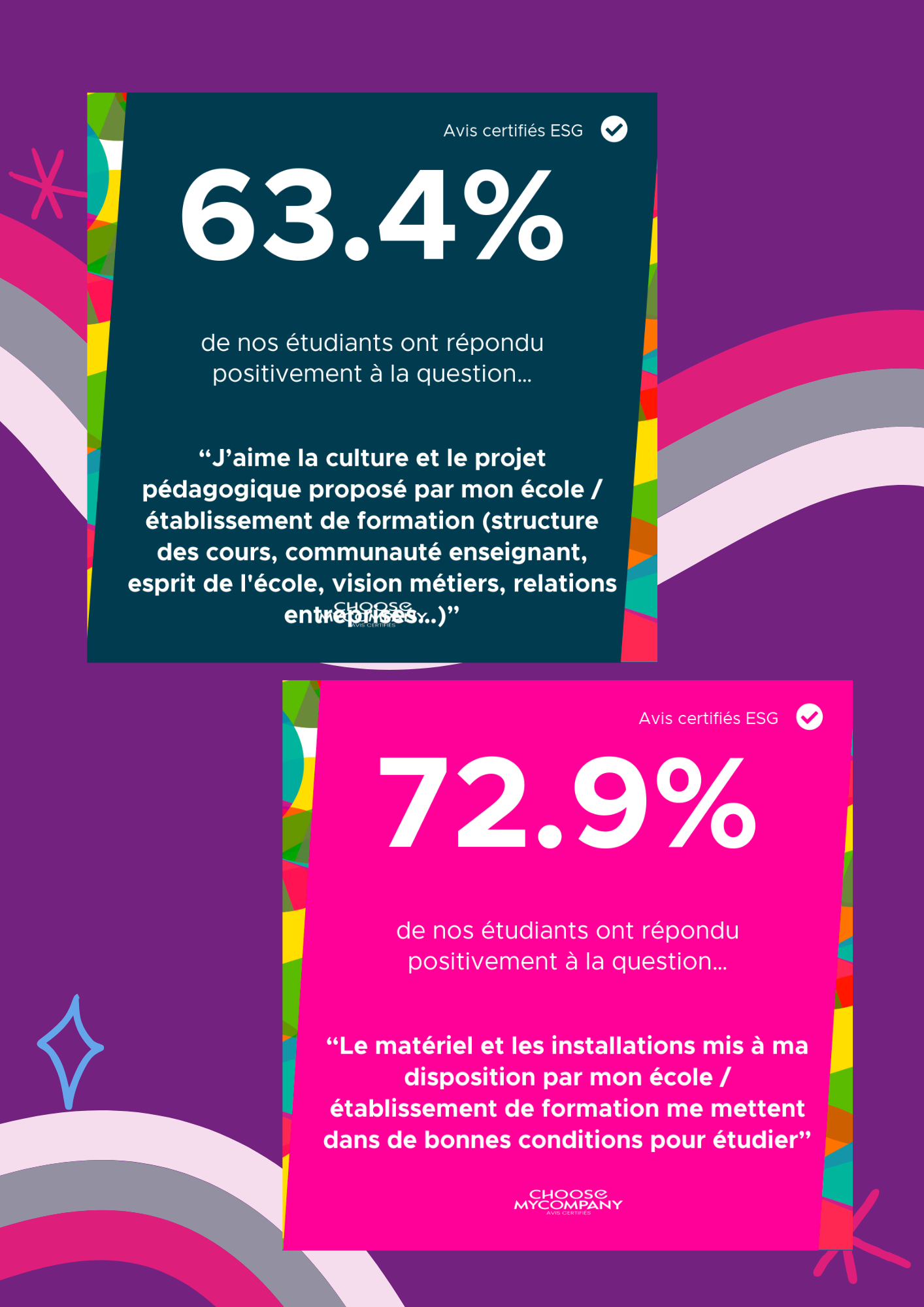 Grâce aux retours positifs des étudiants mais aussi en prenant compte des éléments d'amélioration qu'ils nous ont fait remonter, nous pouvons faire avancer l'école, ensemble.